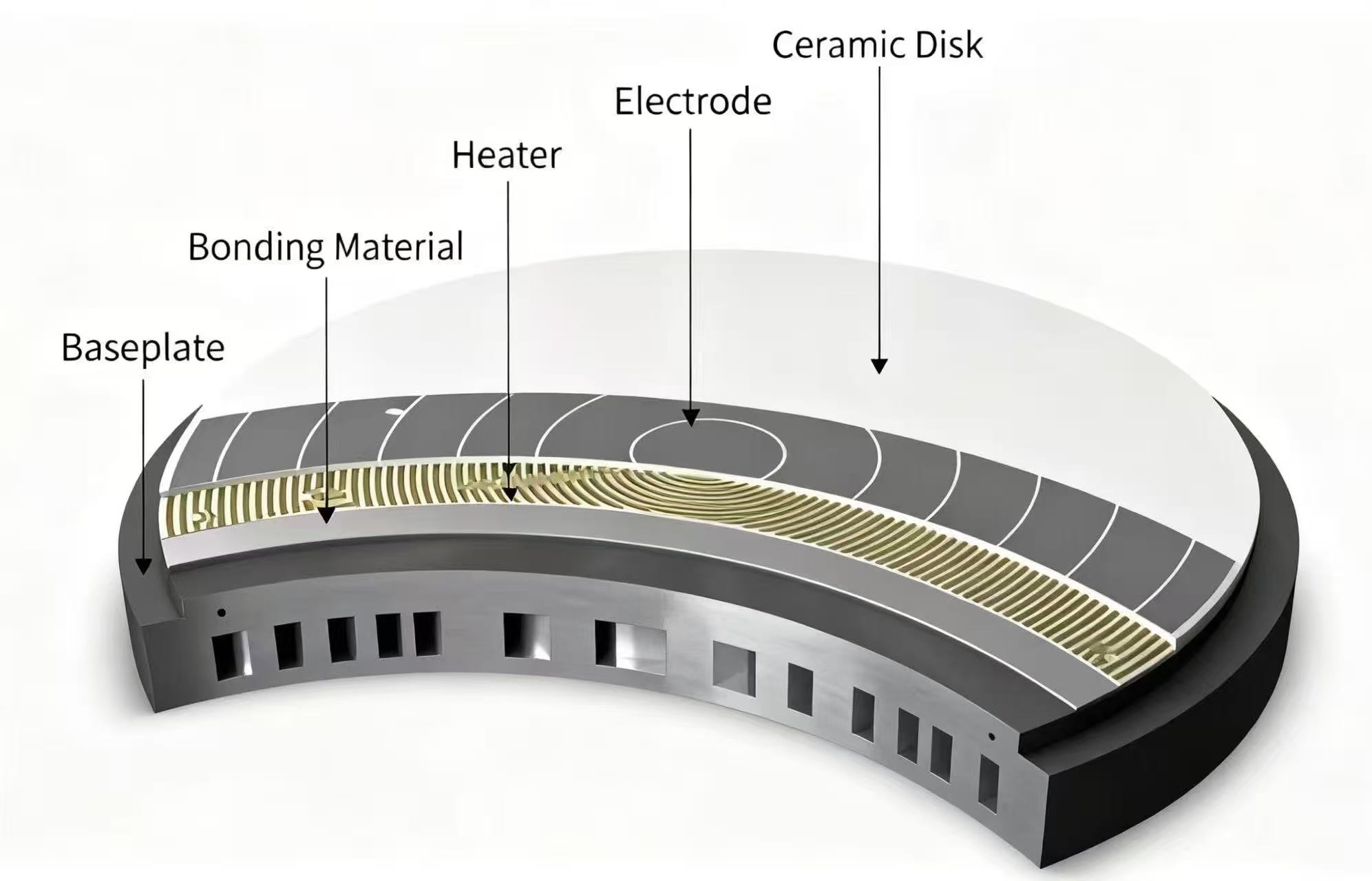 Ceramic electrostatic chuckspraecisiones sunt quae in campo electrostatico inter electrodes et lagana generato utuntur ad fibulationem et lagana fix. Late applicantur in campis, ut semiconductores, tabulae planae ostentationes, et perspectivae, et sunt nuclei instrumenti summi finis sicut machinas PVD, machinas et machinas et ion implantatores.