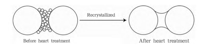 Post summi puritatis pii carbide pulveris diversarum magnitudinum particulae in certa ratione gradatur, corpus viride desideratum formatur ex lapsus emissione, corona torculari et extrusione corona. Haec corpora viridia sunt in atmosphaera iners (qualia argon) vel in vacuo, in atmosphaera iners (2100-2500°C) insculpta. In hoc ambitu, atomi in superficie particularum SiC evaporant ac deinde in colli partibus particularum condensant et depositum constituunt, validam nexum in puncto contactuum particularum formantes corpus sinteratum formantes. Quam ob rem, carbida pii recrystallata nullam recusationem vel liquidam periodum in processu sintering exhibet, demum sceleti structuram cum poris inter se connexis structuram sceleti rari formans.