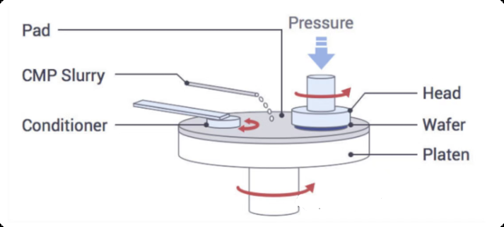 Expolitio mechanica chemica (CMP), quae corrosionem chemica et mechanicam politionem ad imperfectiones superficiei tollendas componit, est processus semiconductor insignis ad altiorem planarizationem assequendum.laganum stridor laminissuperficiem. CMP resultat in duobus defectibus superficiebus, patella et exesa, quae signanter afficiunt planitiam et electricam observantiam structurarum connexionis.