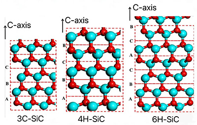 Quippe SiC materia non ex uno Tetraedri unius atomi Si & uno C atomo componitur, sed ex innumeris atomis Si & C. Magna vis atomorum Si et C inundans duplices stratas atomorum (uno atomorum C et unius atomi Si atomorum), et numerosa strata duplicata acervus atomorum ad crystallos SiC formandos. Ob mutationes periodicas quae in processu positis Si-C duplici stratis atomicis occurrunt, nunc plus quam 200 diversae structurae cristallinae cum dispositionibus distincta sunt. Nunc, formae cristallinae communissimae in applicationibus practicis sunt 3C-SiC, 4H-SiC, 6H-SiC.