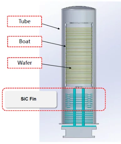 Semicorex solidumPii carbide pinnulistypice instituuntur ut scelerisque velit elementum intra verticalem fornacem fistulae semiconductoris instrumenti scelerisque tractandi, ut RTP furnorum fornaces et fornaces diffusionis. Semicorex solidi pii pinnulae carbidae efficaciter moderari possunt distributionem temperaturae in fornacibus calidis et caloris minuere damnum ad processum partium signandi ianuam quae per altum temperaturas causatur. In humido oxidationis operante condiciones, Semicorex solida pinnulae siliconis carbidae adhiberi possunt ad efficaciter prohibendos impactus negativas in eventibus processus et machinas semiconductores ex aqua vaporum condensationis causata ad temperaturas processus humiles respective.